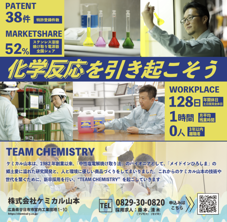 ケミカル山本では、2027年卒業予定の学生、および既卒向けの会社説明会を開催します。